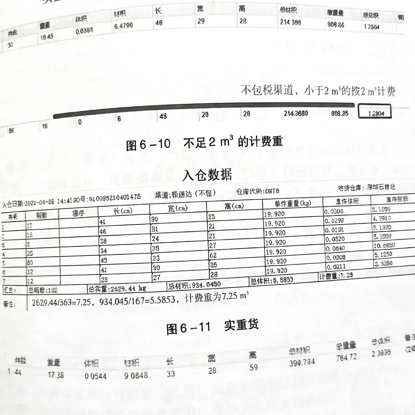 (2)不包税渠道的计费重以m'为单位,取实重、材积重中的较大者,小于2m'的按2m计费(重量单位为kg,外箱尺寸单位为cm),如图所示: 实重计费重=总实重/363,材积计费重=总材积重/167。