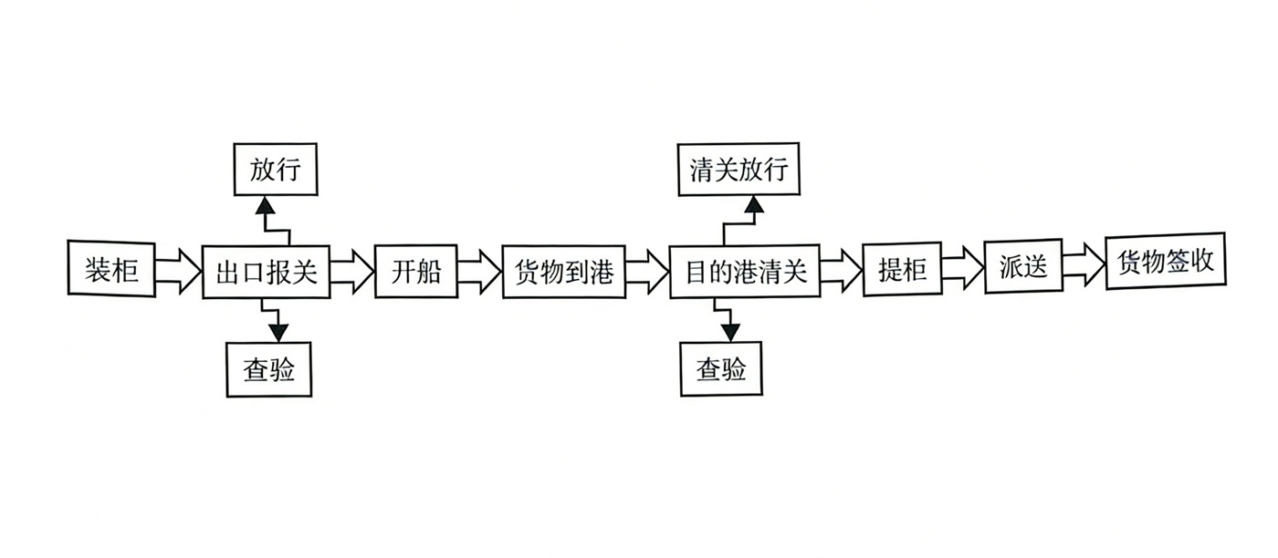 货物装柜后,货柜当天交还码头,第2天内必须安排出口报关,正常情况下当天报关放行,向船公司递交放行条,船公司将统一时间安排将货柜装船。