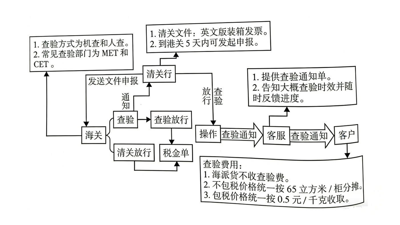 可能会遇到海关通知查验,正常查验时效为2~3天,异常查验时效不定,具体看海关审查情况。若收到报关行查验通知,客服必须第一时间通知客户并附上查验通知单。