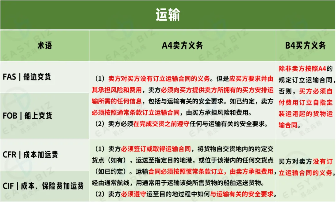 “运输”条款下,4个规则对于买卖双方的义务规定就非常简单而且清晰。