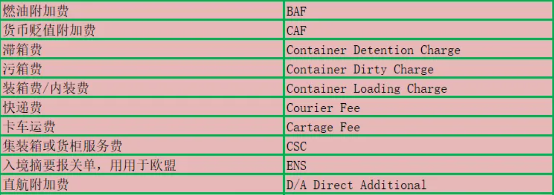 跨境物流空海运费用汇总