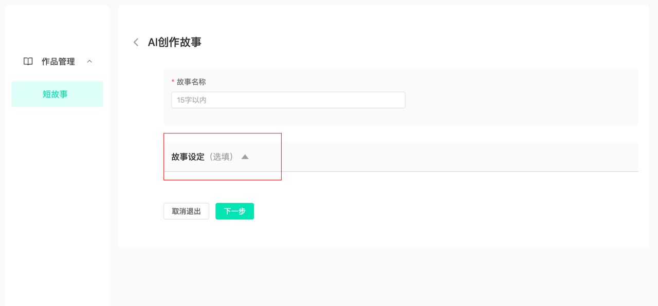 可收起【故事设定】,可不填,直接点击【下一步】进入编辑器